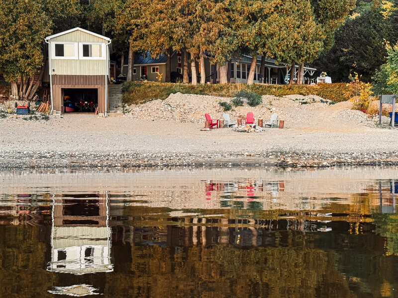 The lower boathouse, where you’ll find kayaks, life vests, and water toys (please carry them—don’t drag).